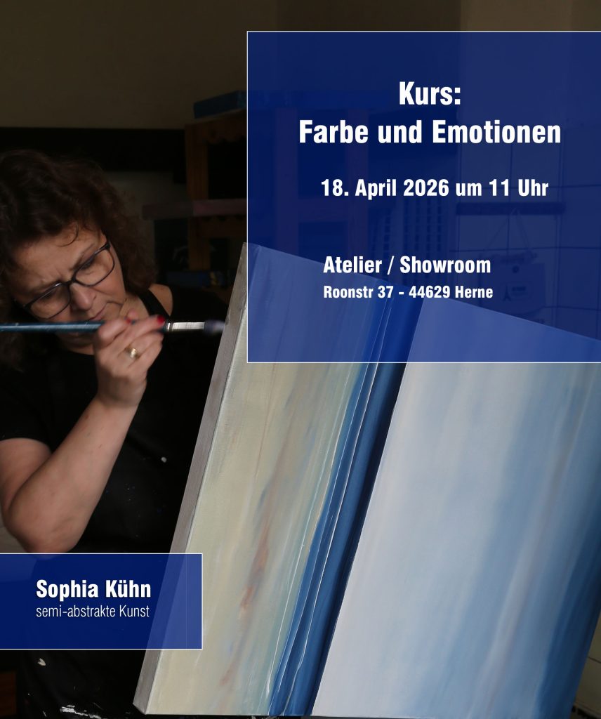 In Herne vereint Sophia Kühn ihr Atelier und ihren Showroom. Ein Ort, an dem Kunst nicht nur betrachtet, sondern unmittelbar erlebt werden kann. Besucher erhalten hier einen direkten Einblick in den Schaffensprozess und können die Wirkung der fluoreszierenden Gemälde unter verschiedenen Lichtverhältnissen entdecken. Termine sind nach Vereinbarung möglich, eine persönliche Begegnung mit der Künstlerin und die ideale Gelegenheit, das passende Werk für die eigene Sammlung auszuwählen.