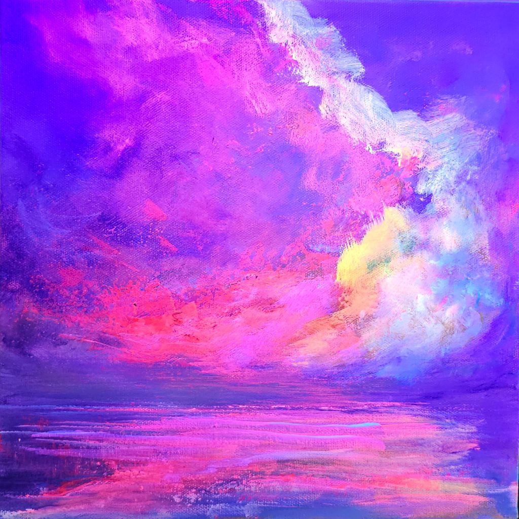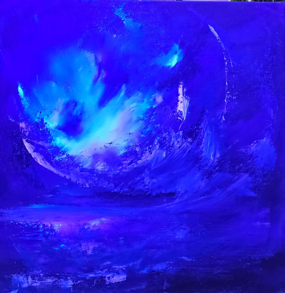 Mit „Fluorescent Horizons“ erforsche ich, wie Licht Emotionen verwandelt. Die Werke entstehen als Gemälde in unterschiedlichen Formaten auf Leinwand, geschaffen mit fluoreszierenden Pigmenten. Im Tageslicht erscheinen sie als halb-abstrakte See- und Himmelslandschaften; unter Schwarzlicht entfalten sie eine intensive Leuchtkraft, die sich stetig wandelt.