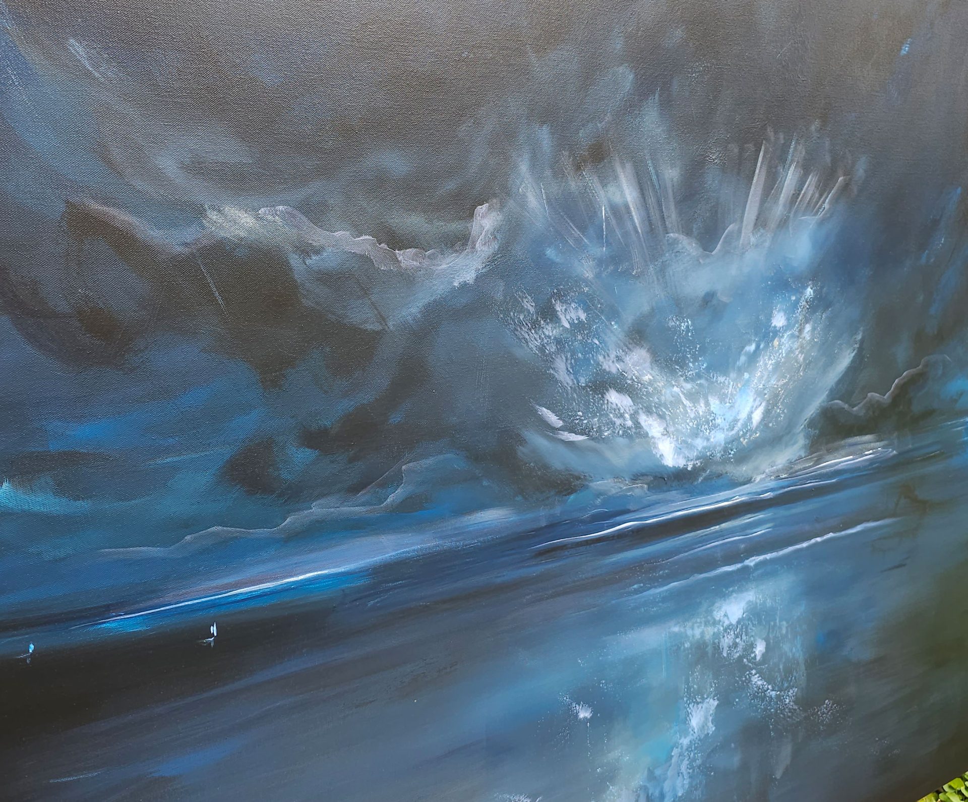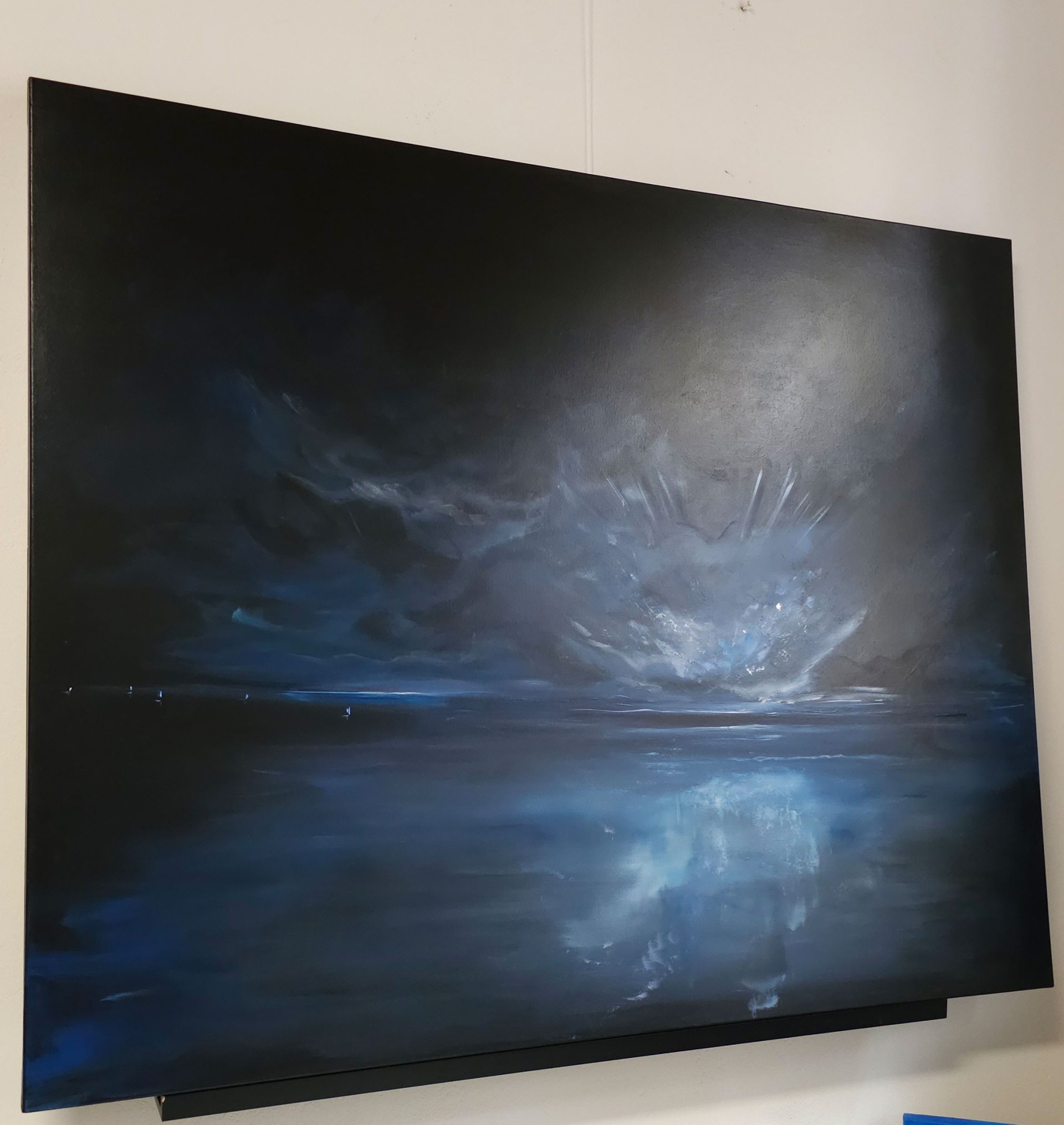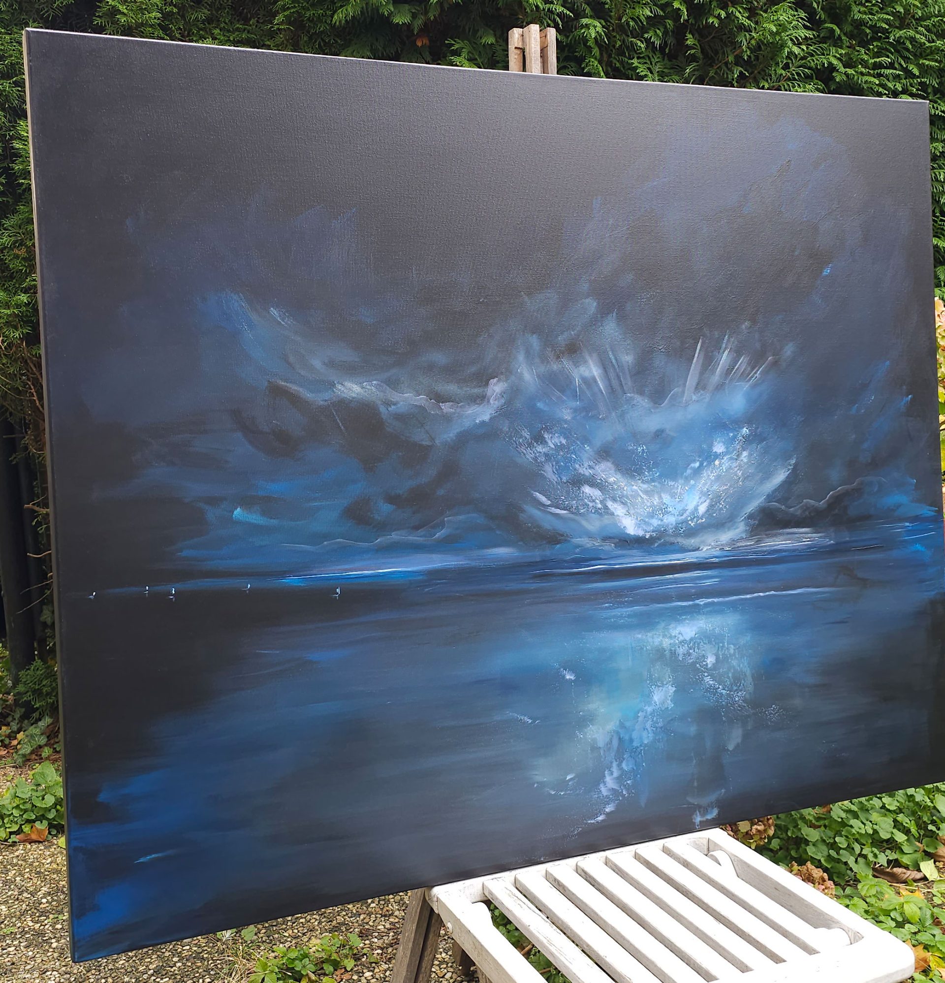 Shades of the Night Sky ist ein Bild der Dunkelheit – aber nicht der Leere. In vielschichtigen Nuancen von Blau, Schwarz und Grau entfaltet sich eine nächtliche Himmelslandschaft, die mehr ahnen lässt als sie zeigt. Der Horizont scheint beinahe zu verschwinden, doch im Zentrum bricht ein geheimnisvolles Leuchten hervor – wie eine Erinnerung, die nicht ganz vergeht.