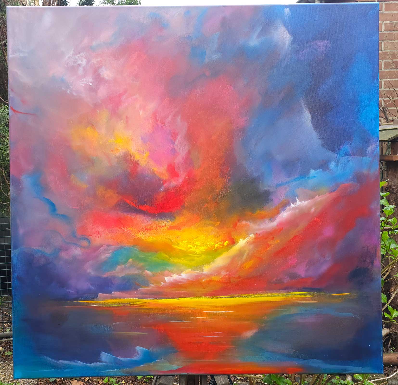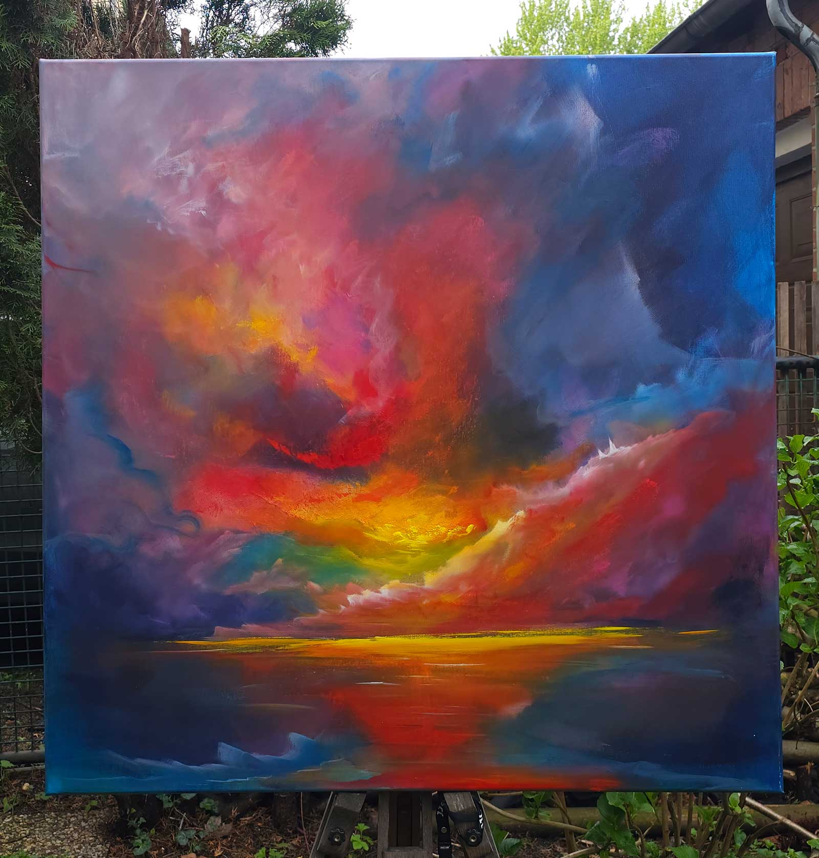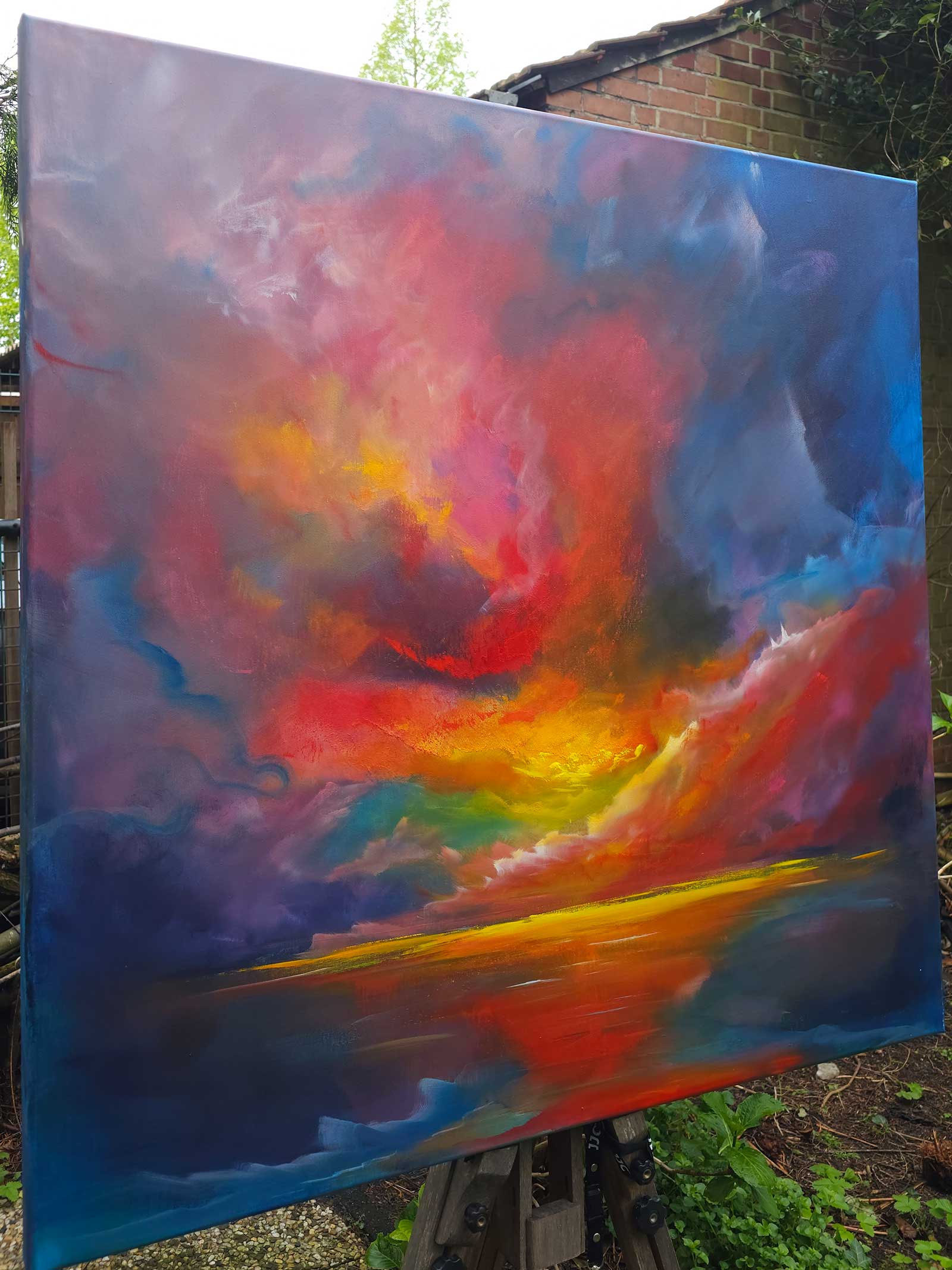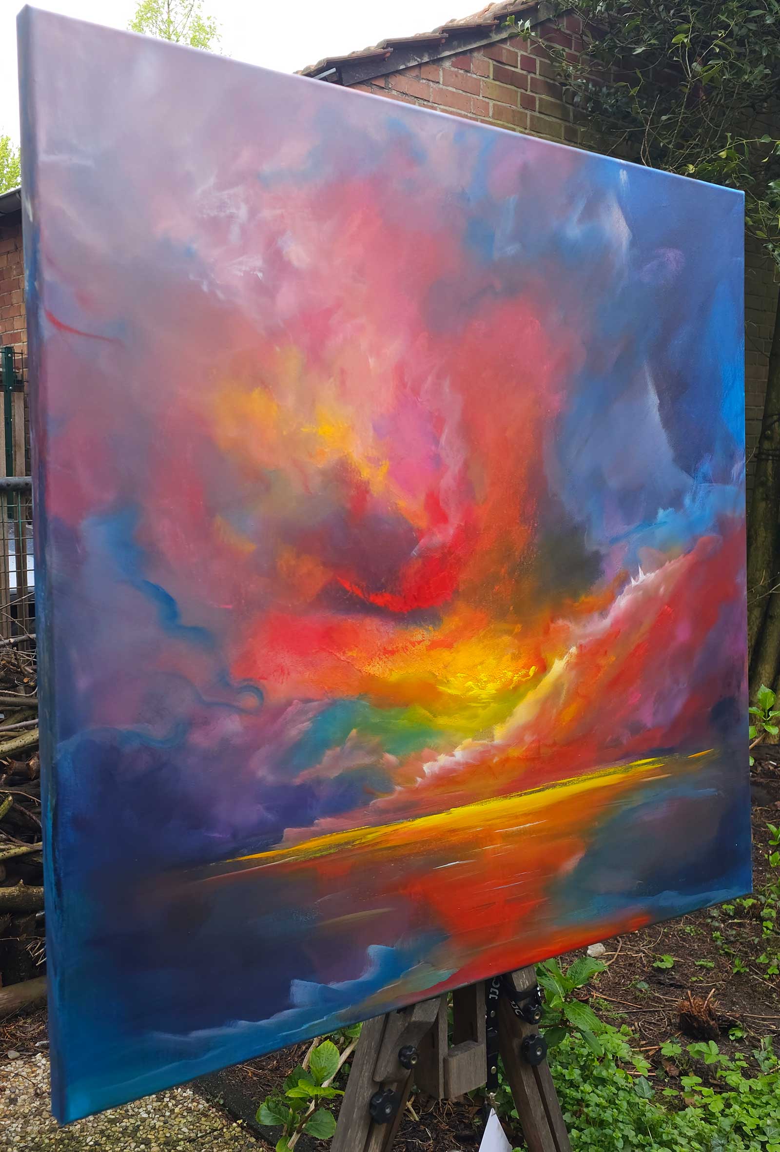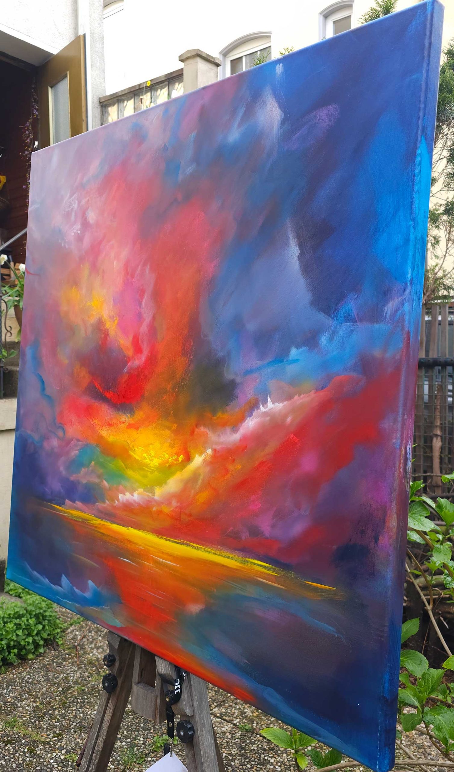 Turning Point thematisiert einen Moment des Übergangs, in dem gegensätzliche Kräfte aufeinandertreffen und sich zu verschieben beginnen. Das Werk beschreibt einen Zustand von Intensität, in dem sich Farbe und Licht bündeln und einen Raum der Veränderung öffnen, ohne ihn vollständig aufzulösen. Es verweist auf Transformation und Ausrichtung und darauf, dass selbst innerhalb von Spannung eine neue Richtung entstehen kann.