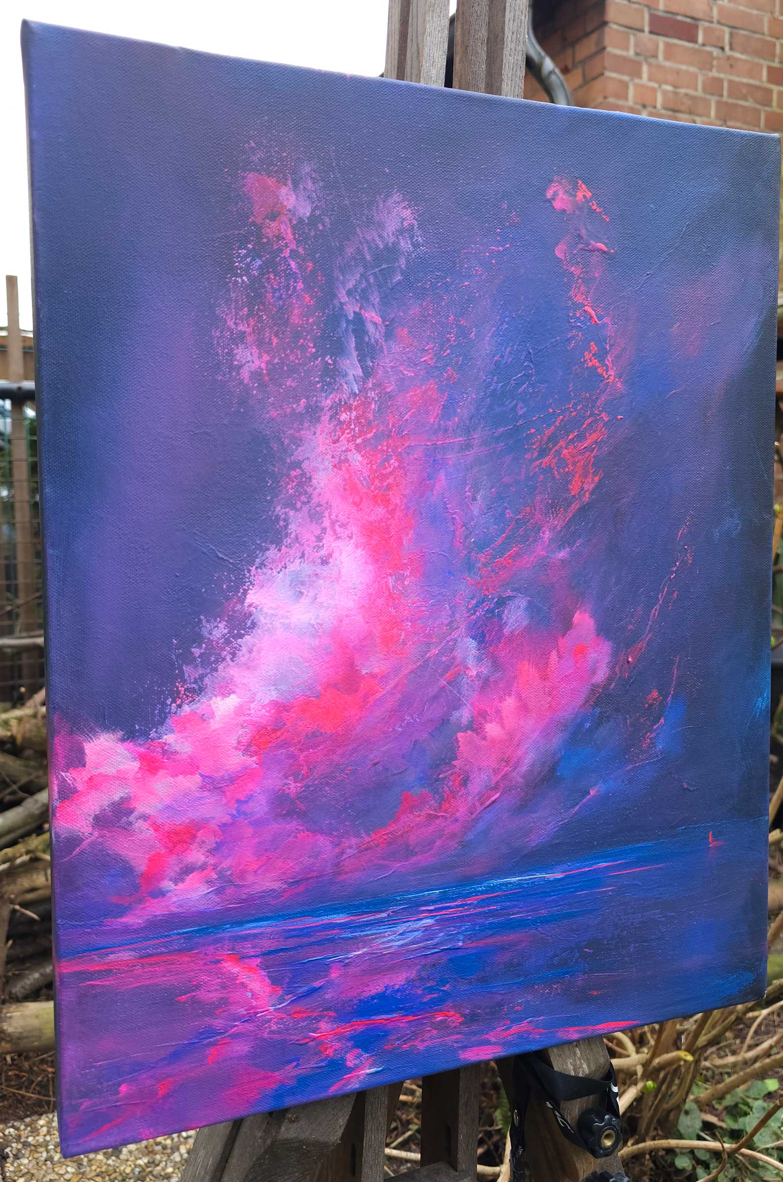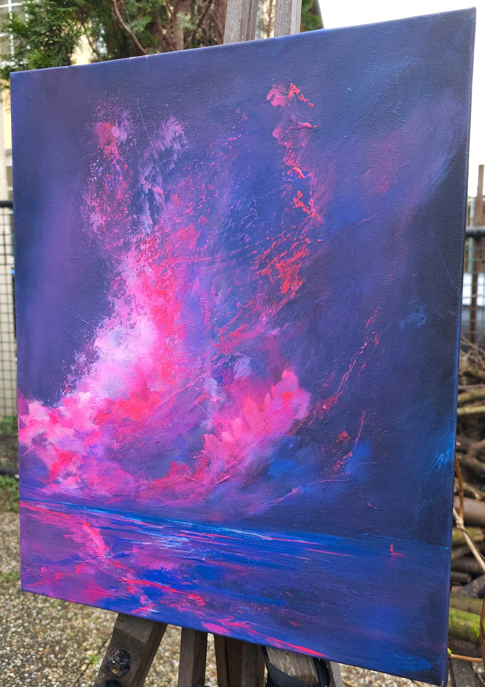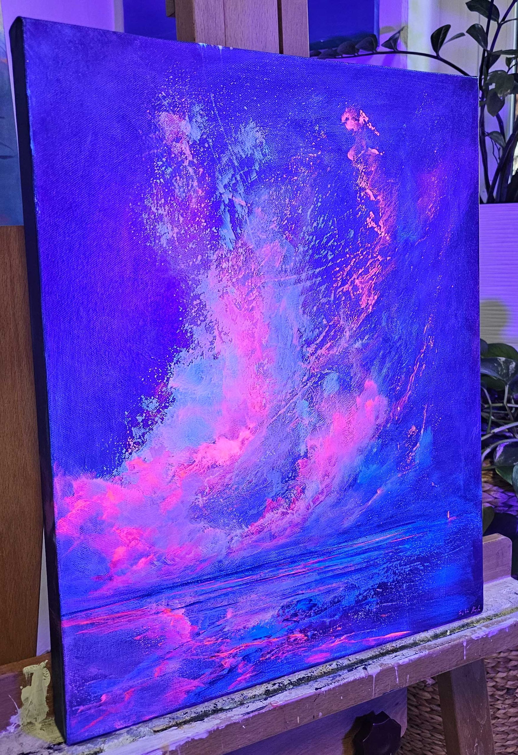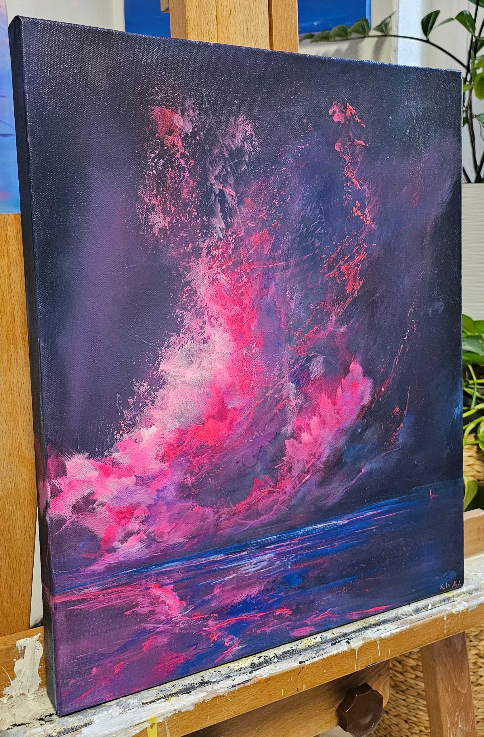 Vivid Break thematisiert einen Moment, in dem Farbe und Energie plötzlich aus umgebender Dunkelheit hervortreten. Das Werk beschreibt eine dynamische Spannung, in der leuchtende Töne sich sammeln, ausdehnen und die dichte Atmosphäre durchbrechen. Es verweist auf Intensität und Transformation und darauf, dass selbst aus tiefster Stille lebendige Kräfte entstehen können.